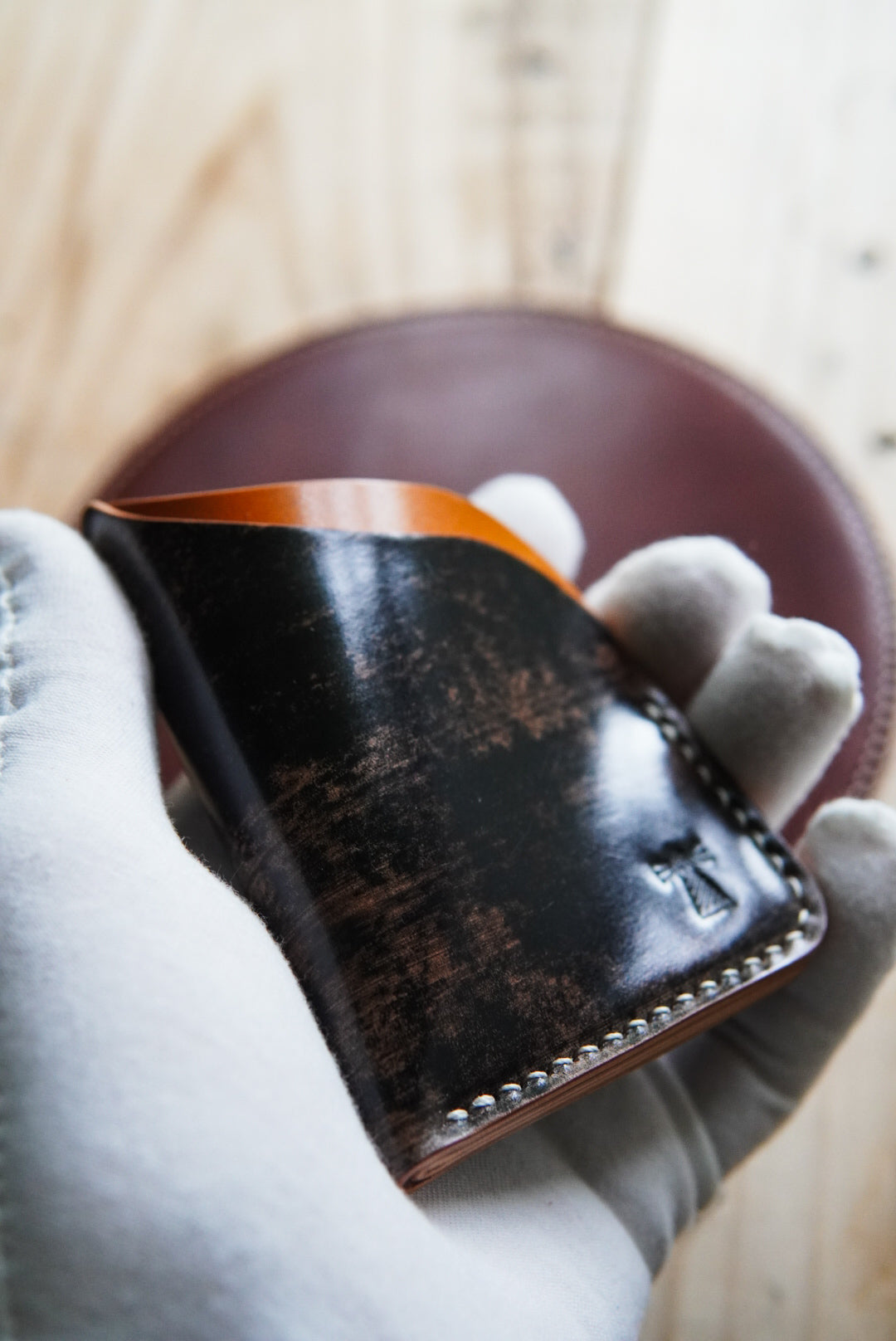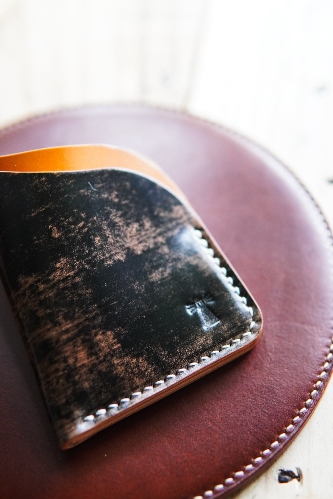 The Astragal vertical card holder holds both cards and cash essentials. The minimalist design is handmade from full-grain leather with a slim profile. Complete with 3 vertical card slots and cash storage. Holds 6-9 cards comfortably and folded cash