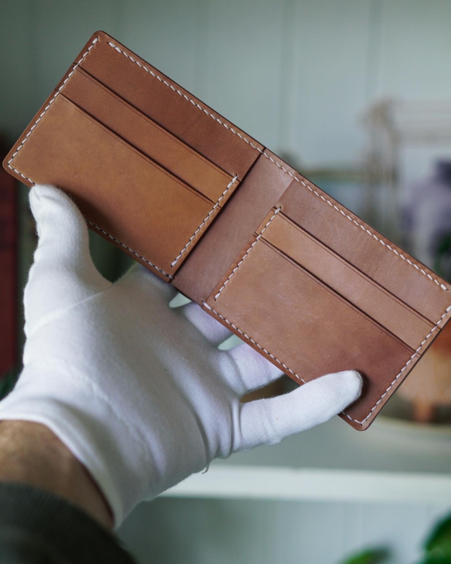 This classic bifold wallet (the dad wallet) holds both cards and cash essentials. The classic design is handmade from full-grain leather.
