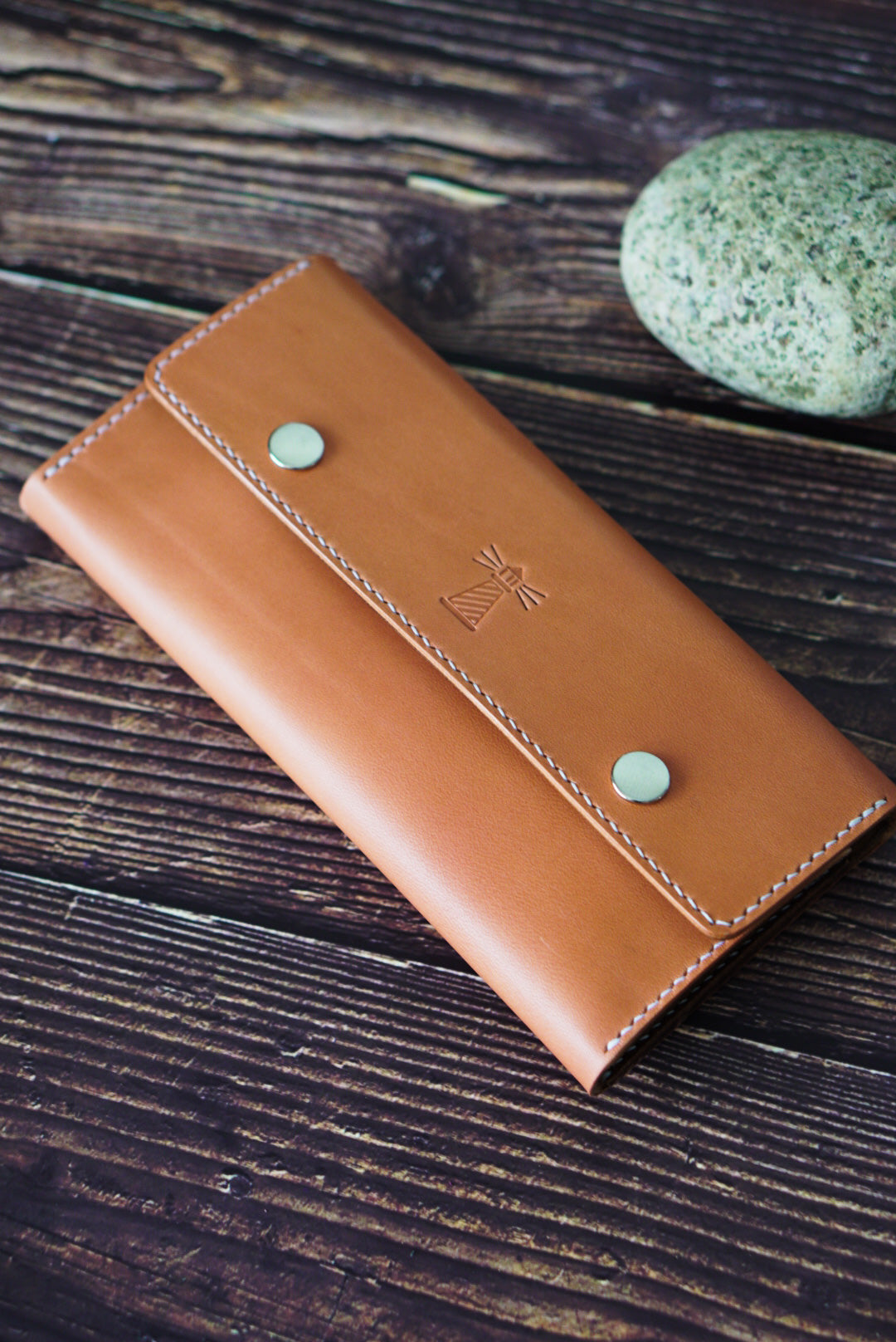 This clutch holds your phone, cards and cash essentials. The simple design is handmade from full-grain leather. Complete with 3 sections, a middle zip feature for your loose change and a button close.