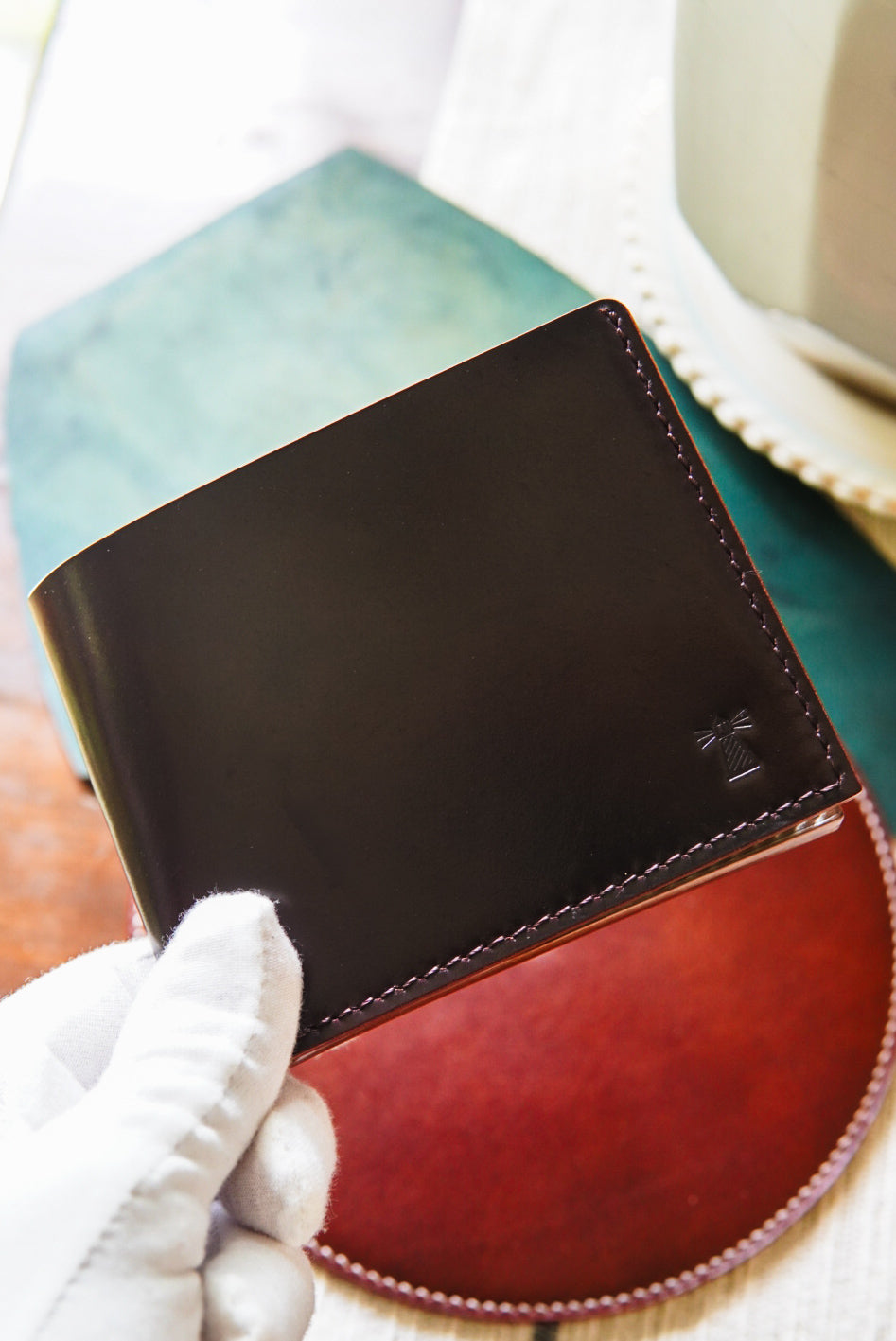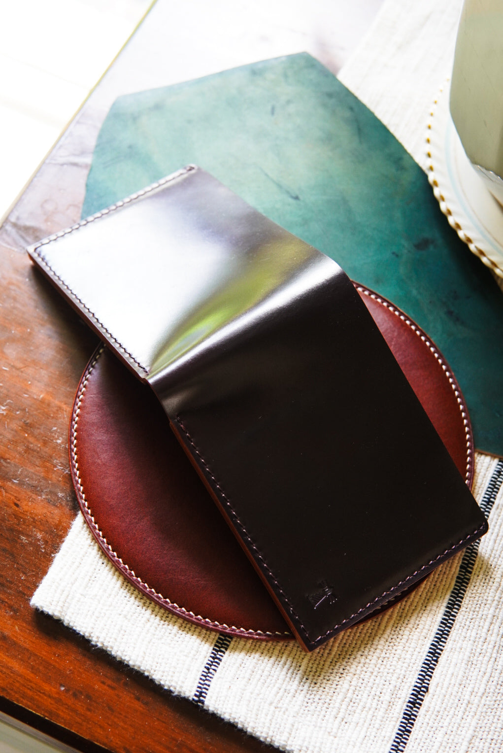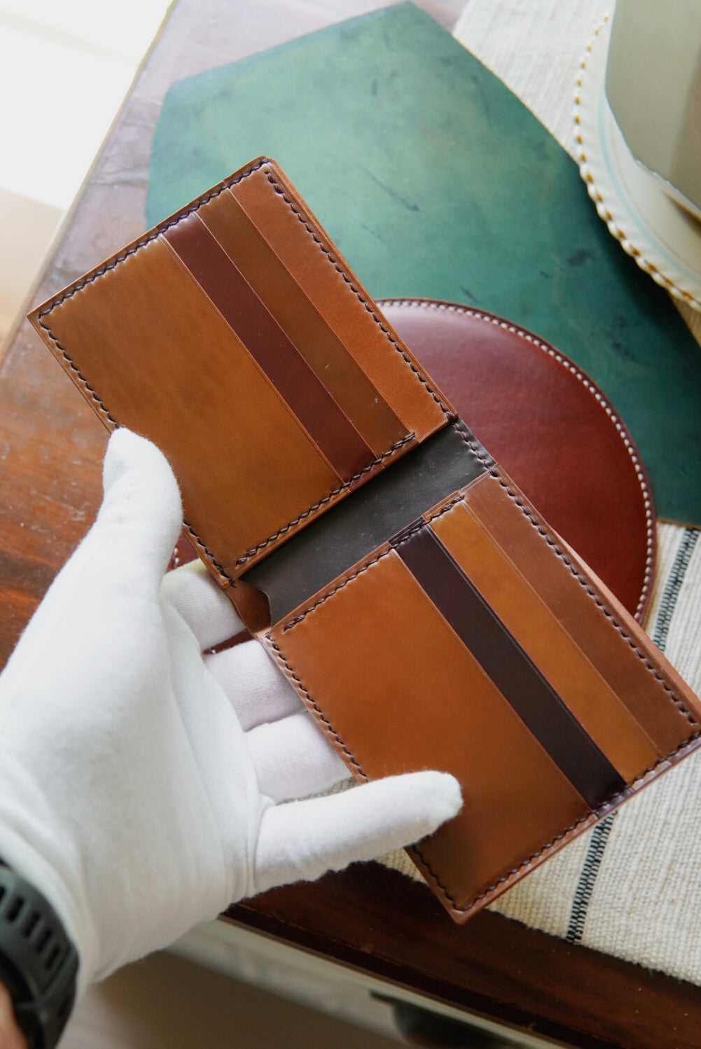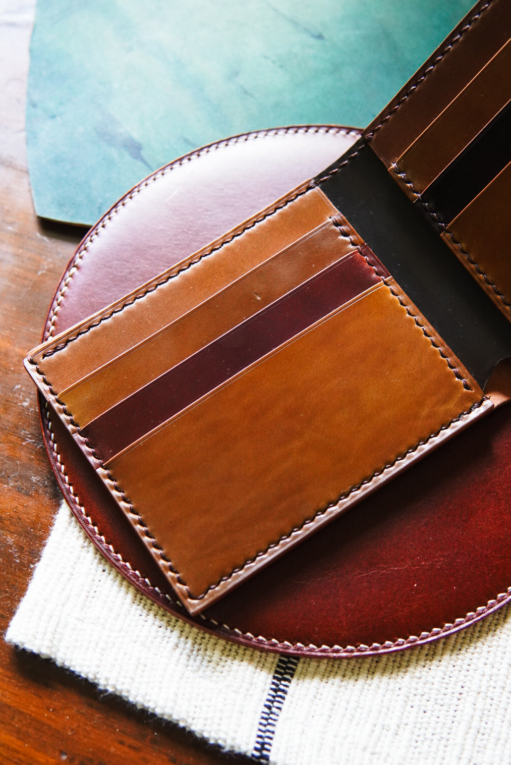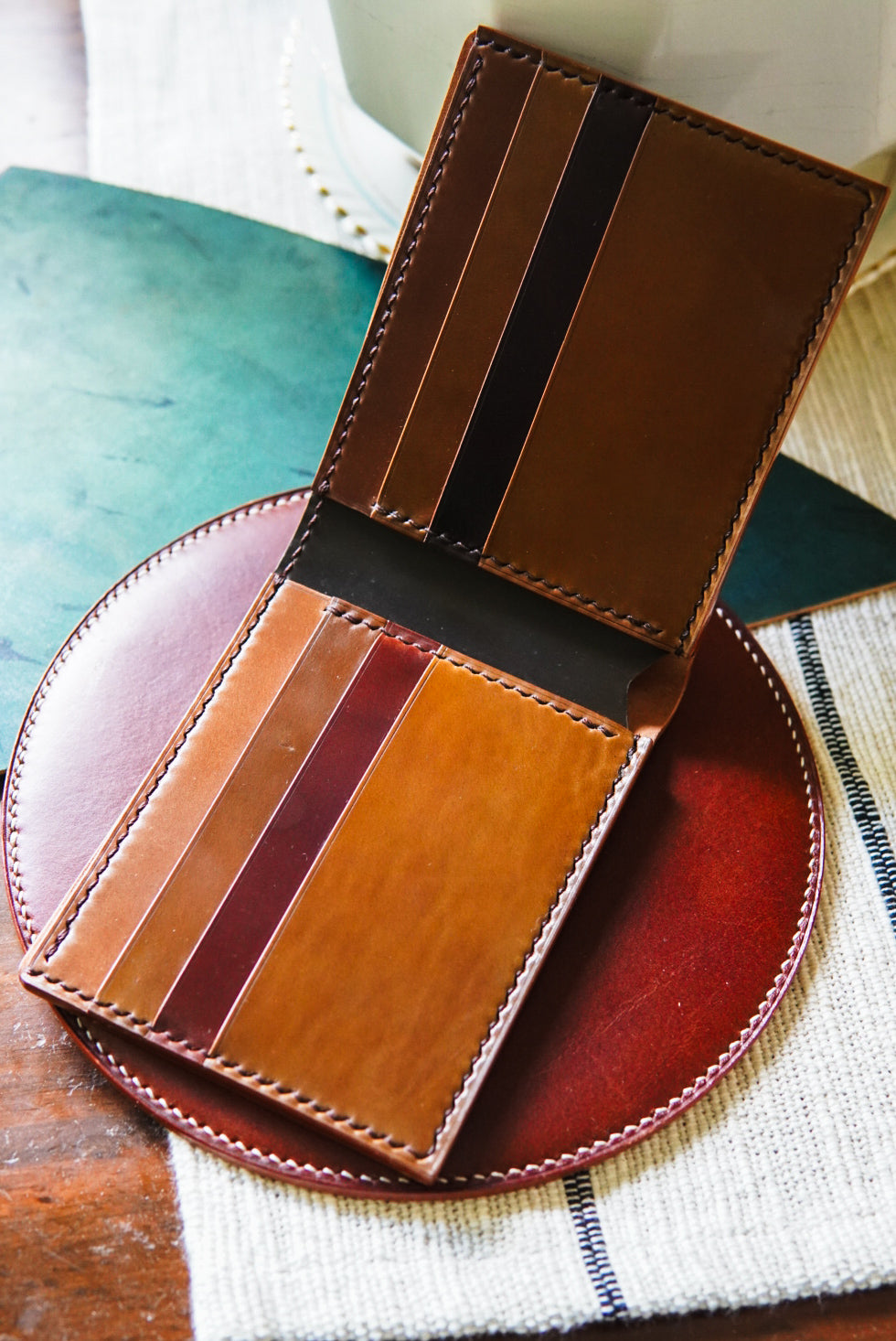 The wallet is hand-stitched with waxed thread, ensuring a long-lasting durability. The edges of the leather are burnished and waxed for a sleek, finished look. The wallet is slim and can easily fit in your pocket.