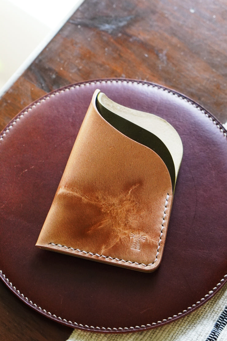 The Astragal vertical card holder holds both cards and cash essentials. The minimalist design is handmade from full-grain leather with a slim profile. Complete with 3 vertical card slots and cash storage. Holds 6-9 cards comfortably and folded cash