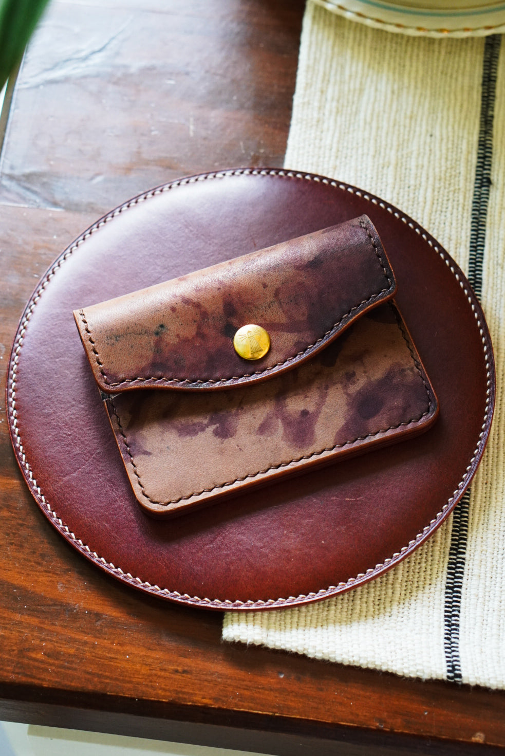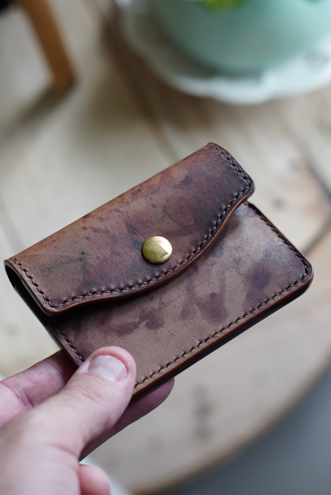 Elevate your everyday carry with The Keeper snap wallet, crafted locally with high-quality vegetable tanned leather. This sleek wallet features three pockets and a single snap closure button for secure organization of your essential cards. Meticulously handmade by myself, it boasts durable hand-stitched construction and hits polished edges. With its slim profile and minimalist design, this card wallet is both functional and elegant, reflecting your appreciation for quality and craftsmanship.
