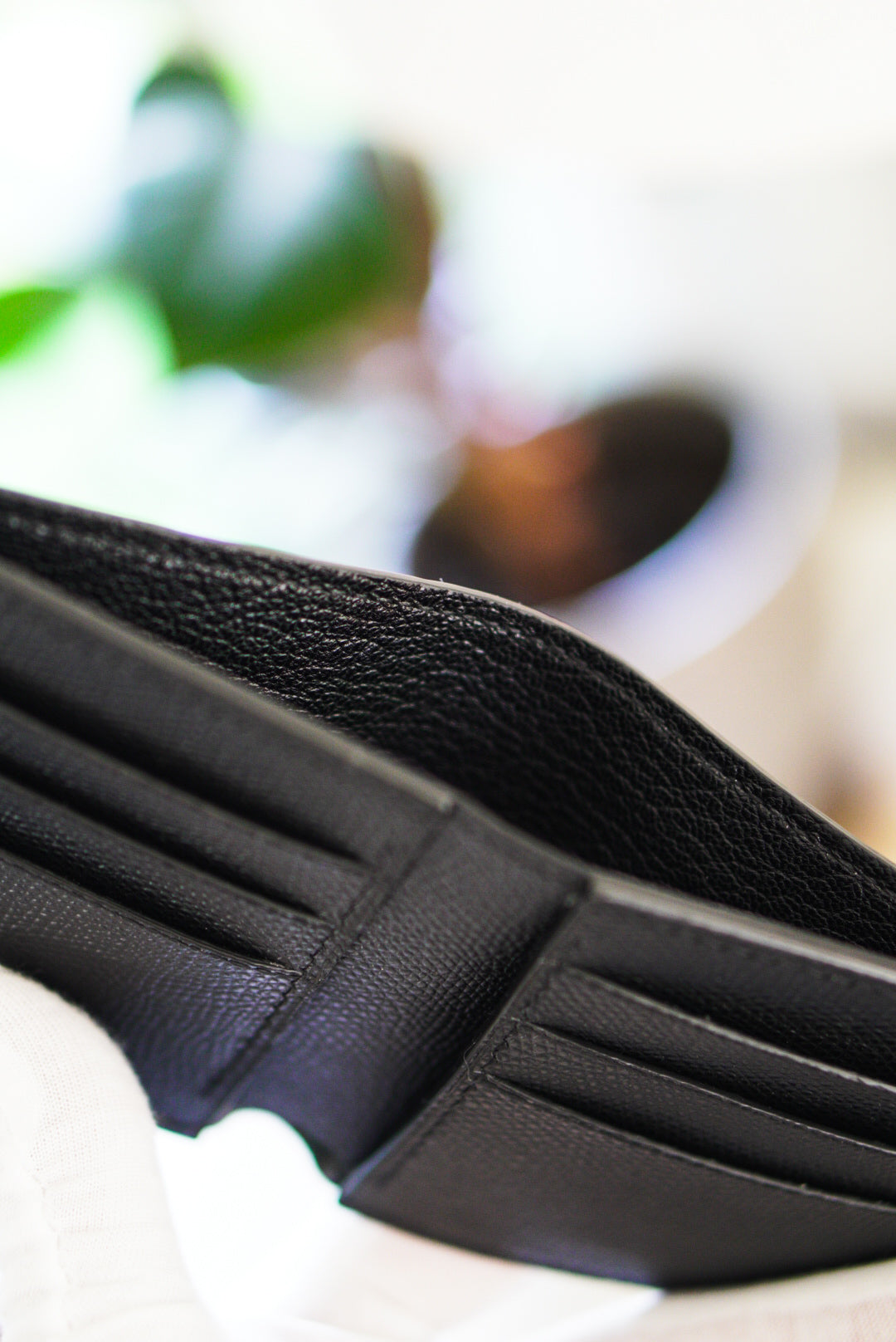 The wallet is hand-stitched with waxed thread, ensuring a long-lasting durability. The edges of the leather are burnished and waxed for a sleek, finished look. The wallet is slim and can easily fit in your pocket.