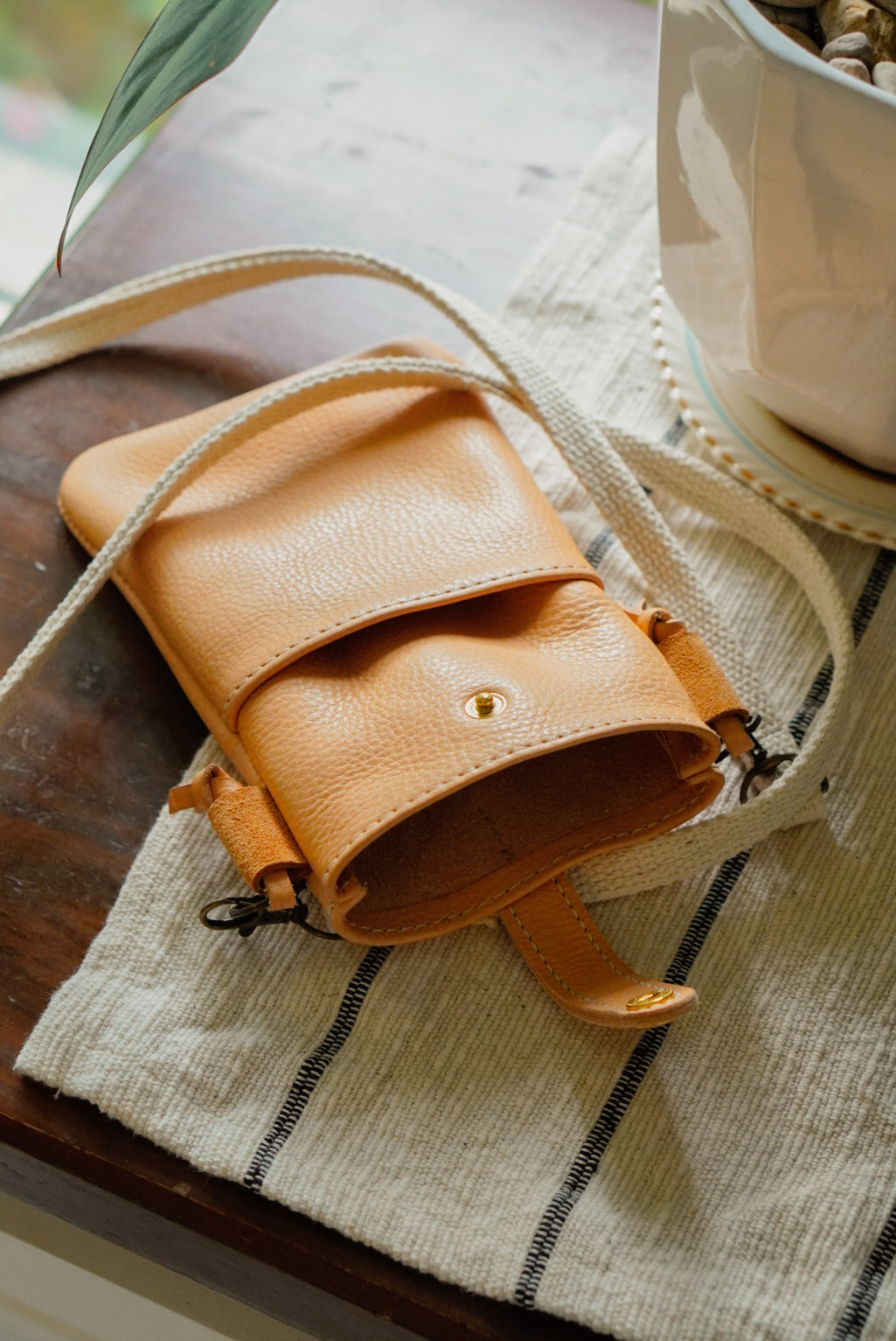 With two compartments, it offers just enough space for your daily essentials—your phone, wallet, and small accessories—without the bulk. The clean lines, natural materials, and compact silhouette make it an ideal everyday companion.
